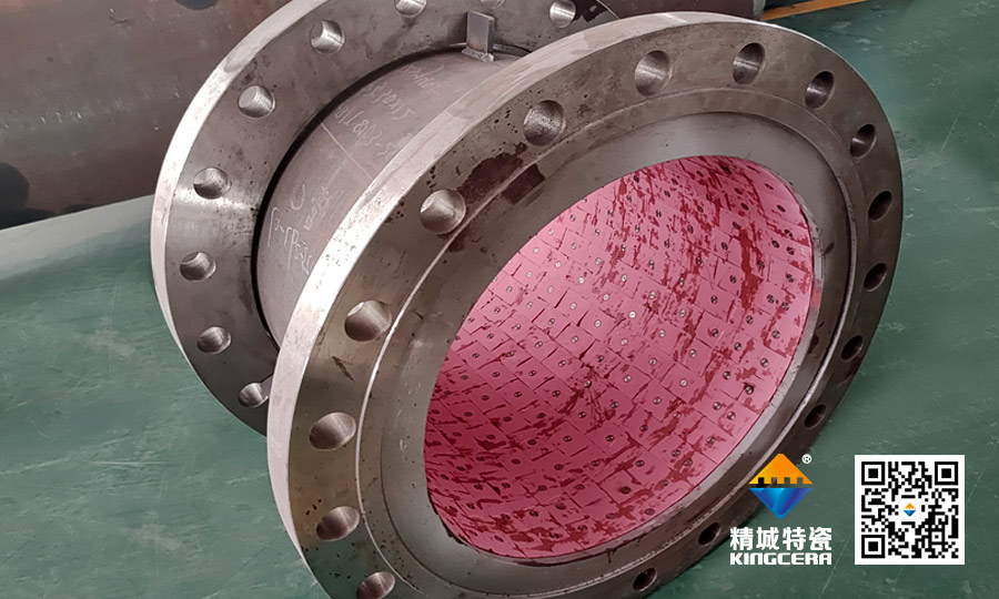 该耐磨陶瓷钢管由钢管、粘胶及耐磨陶瓷三层组成,钢件采用20#整体热弯成型(区别于离心浇铸管道焊接或卷板成型),陶瓷采用与清华联合研发的350度耐温无机粘胶粘接在钢件内壁