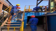 450㎡烧结车间一次混合机耐磨陶瓷施工现场图片