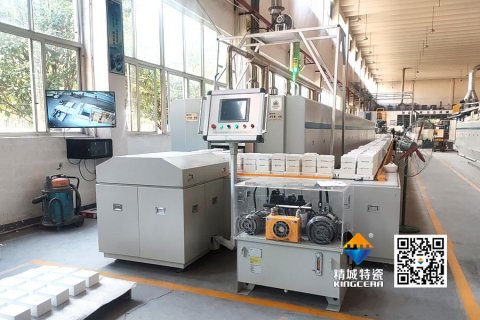 精城特瓷高温双道循环推板隧道窑正式投产,通过半自动化系统替代人工推板,显著提升生产效率和产品优等率。窑炉采用多测温点精准控温设计,优化能耗与工艺稳定性。这一变革不仅缩短烧制周期,更为高端订单提供精准复现