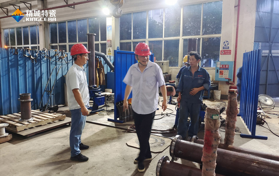 近日,精城特瓷前往湖南某水泥厂进行客户回访,客户对水泥立磨陶瓷磨辊轴保护套使用效果非常满意,又提出新的合作项目,达成更深度业务合作。