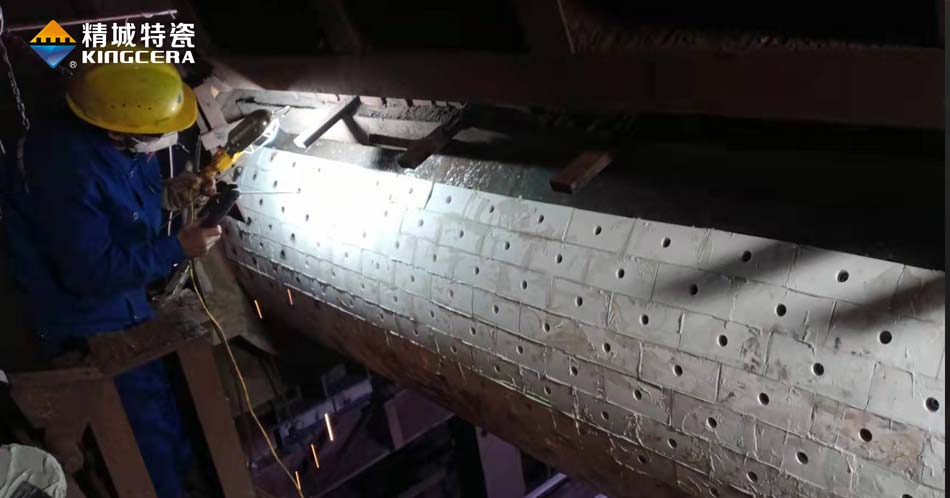 内衬耐磨陶瓷管道可以根据管道的尺寸定制相应规格的陶瓷环或者陶瓷片,通过粘胶或者螺柱焊的方式固定在管道内部,形成一个陶瓷内衬层,起到防磨效果。